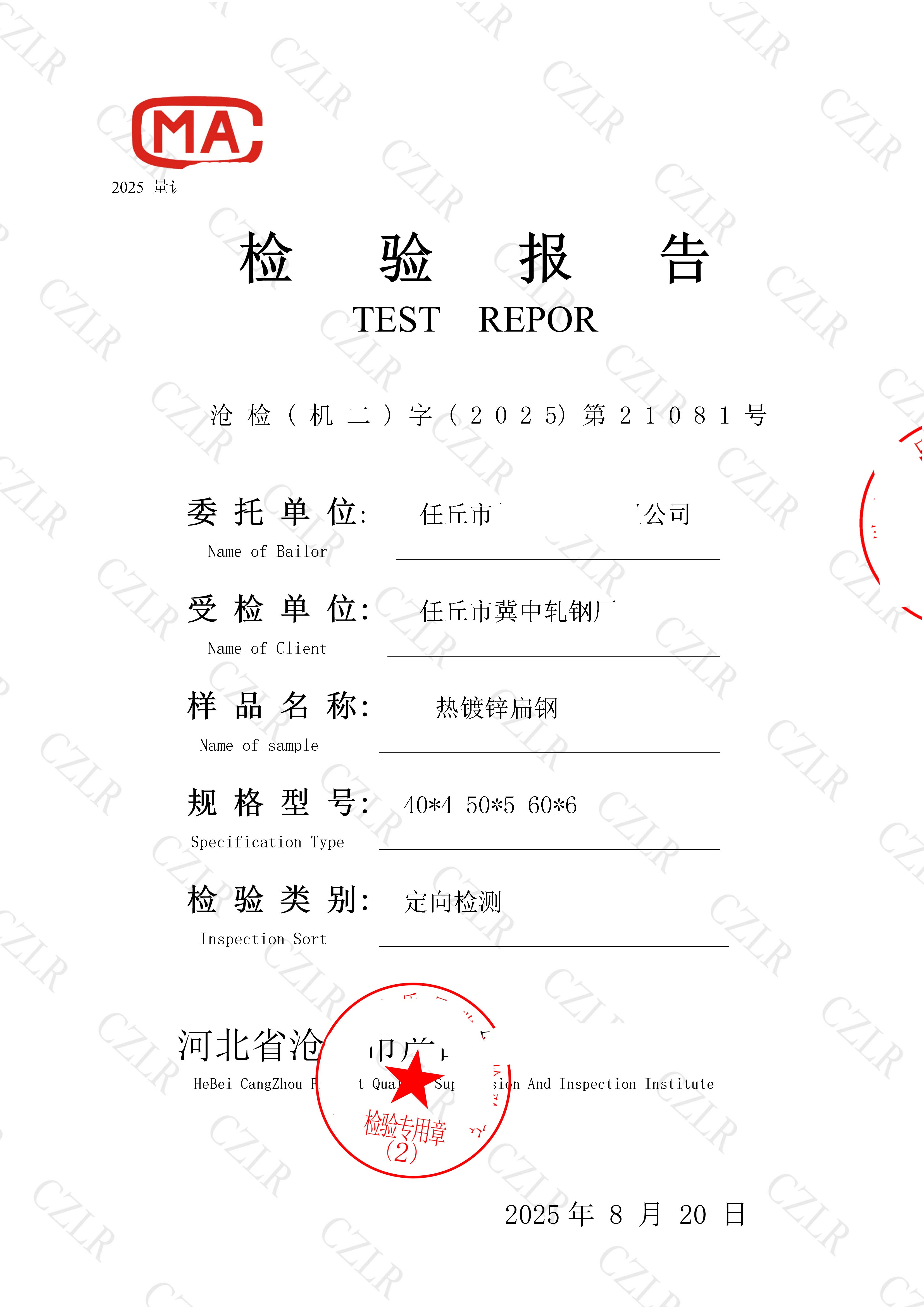 本廠第三方抽檢檢測報告